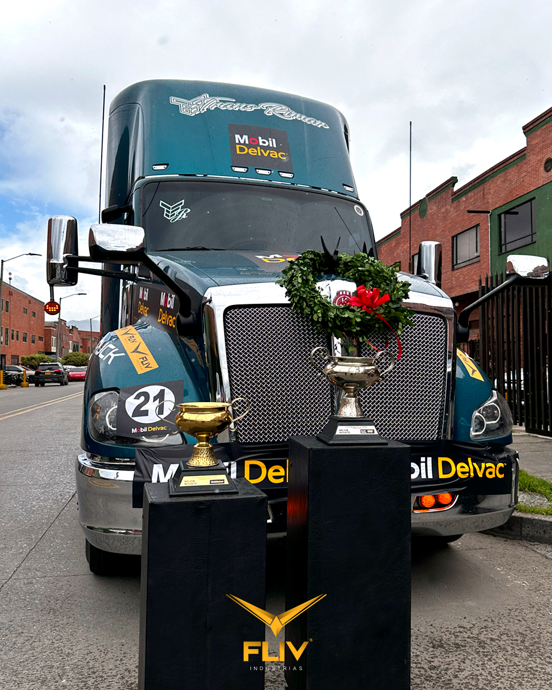 La competencia va más allá de la velocidad. La pista se convierte en un lienzo de luces, con los camiones exhibiendo los productos de Industrias Fliv