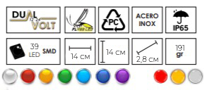 STOP RECTANGULAR 24 LEDS ARO ACERO